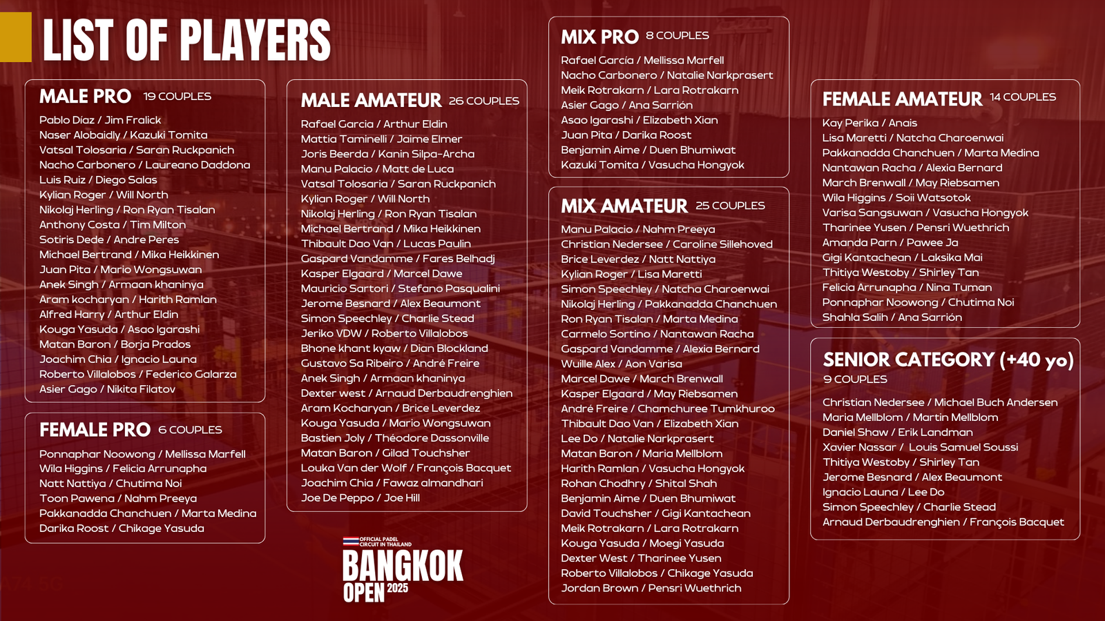 Are you looking for a unique platform to highlight your brand? We invite you to explore an unprecedented partnership opportunity on our prestigious padel circuit in Thailand. Contact us today and discover the potential of a partnership with our padel circuit, where passion and brand presence meet in Thai paradise.